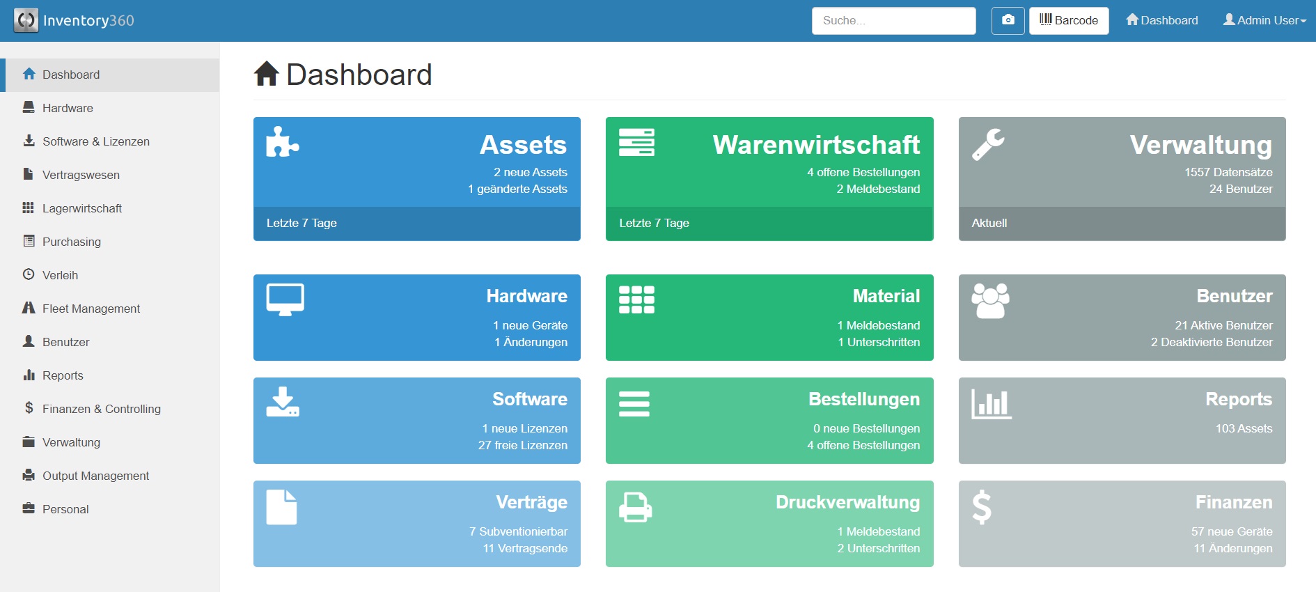 Kombiniert Hardware, Lizenzen, Verträge, Bestellungen und vieles mehr in einem System.