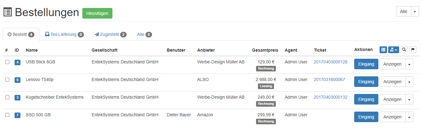 Kombiniert Hardware, Lizenzen, Verträge, Bestellungen und vieles mehr in einem System.