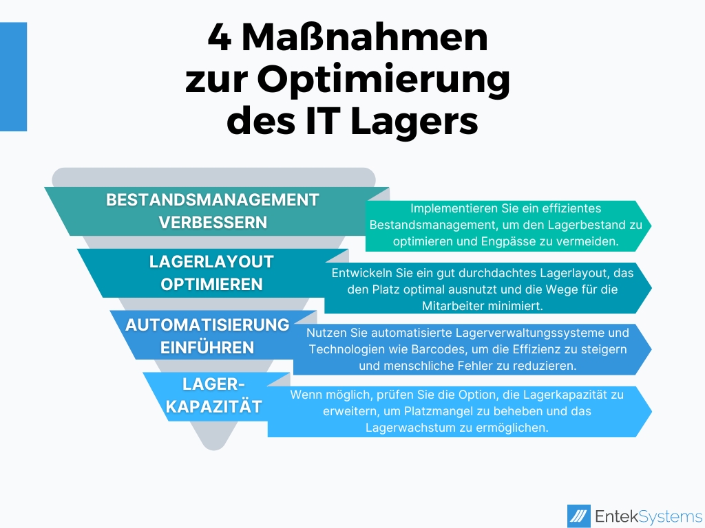 Die Implementierung der folgenden Maßnahmen kann dazu beitragen, ein eigenes IT-Lager nachhaltig kosteneffizient zu betreiben:
