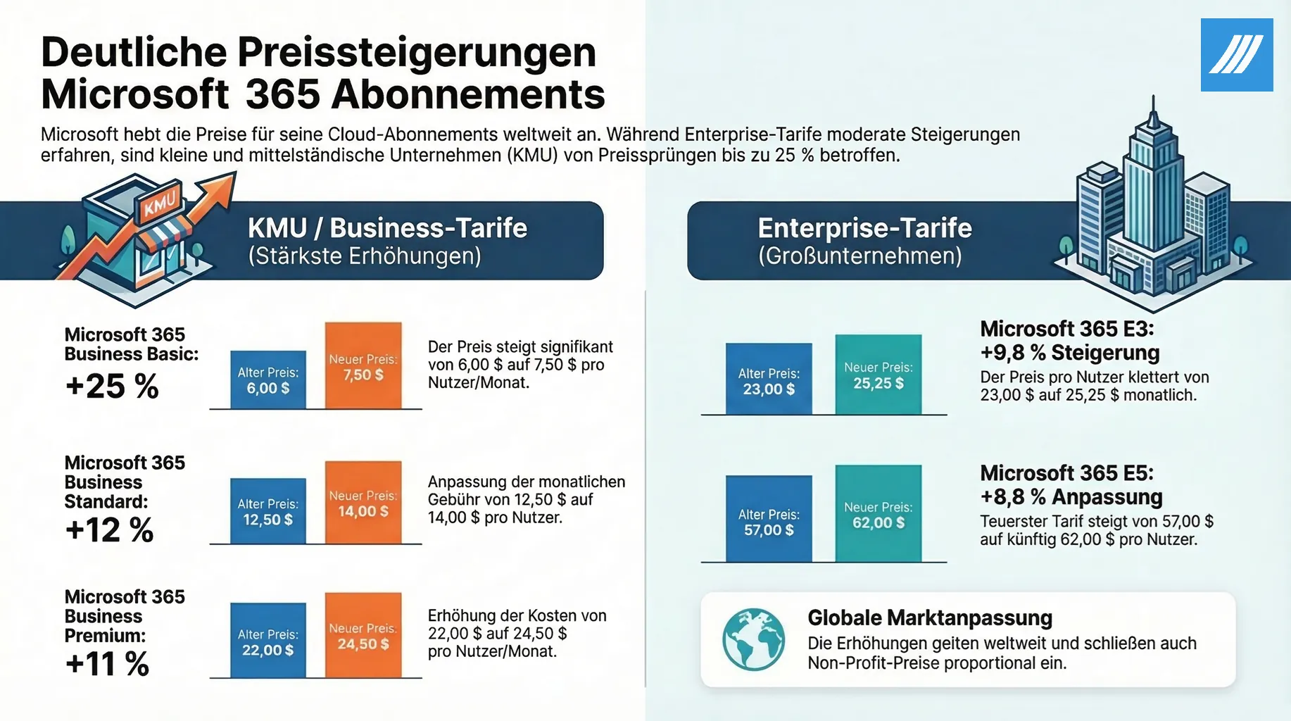 Die Kosten im IT-Bereich steigen seit Jahren kontinuierlich und ein Ende ist nicht in Sicht. Ein aktuelles Beispiel liefert Microsoft: Zum 1. Juli 2026 sollen die Listenpreise, je nach Produktlinie, erneut um 9 bis 25 Prozent steigen. Weitere Informationen hierzu finden sich in unserem Beitrag zu den Preissteigerungen bei Microsoft in 2026.