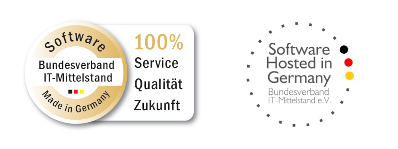 Im Rahmen des Beitritts haben wir unsere Produktbereiche zudem hinsichtlich der Maßgaben für "Software Made in Germany" und "Software Hosted in Germany" zertifizieren lassen.