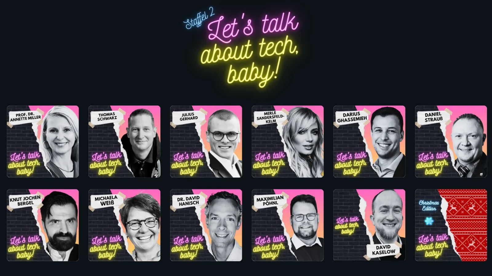 Unser Erfolgs-Podcast "Let's talk about tech, baby", der in die 3. Staffel geht, haben wir in diesem Jahr etliche spannende Gäste gewinnen können. Der Terminkalender für 2026 ist bereits gut gefüllt.