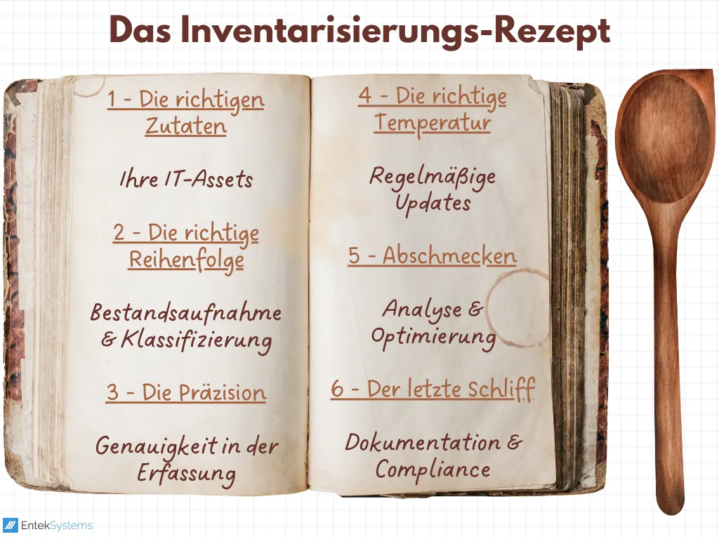 Wie bei einem guten Rezept, bei dem die richtigen Zutaten, die präzise Zubereitung und die regelmäßige Pflege entscheidend sind, führt eine gut durchgeführte IT-Inventarisierung zu einer optimalen Verwaltung Ihrer IT-Ressourcen.