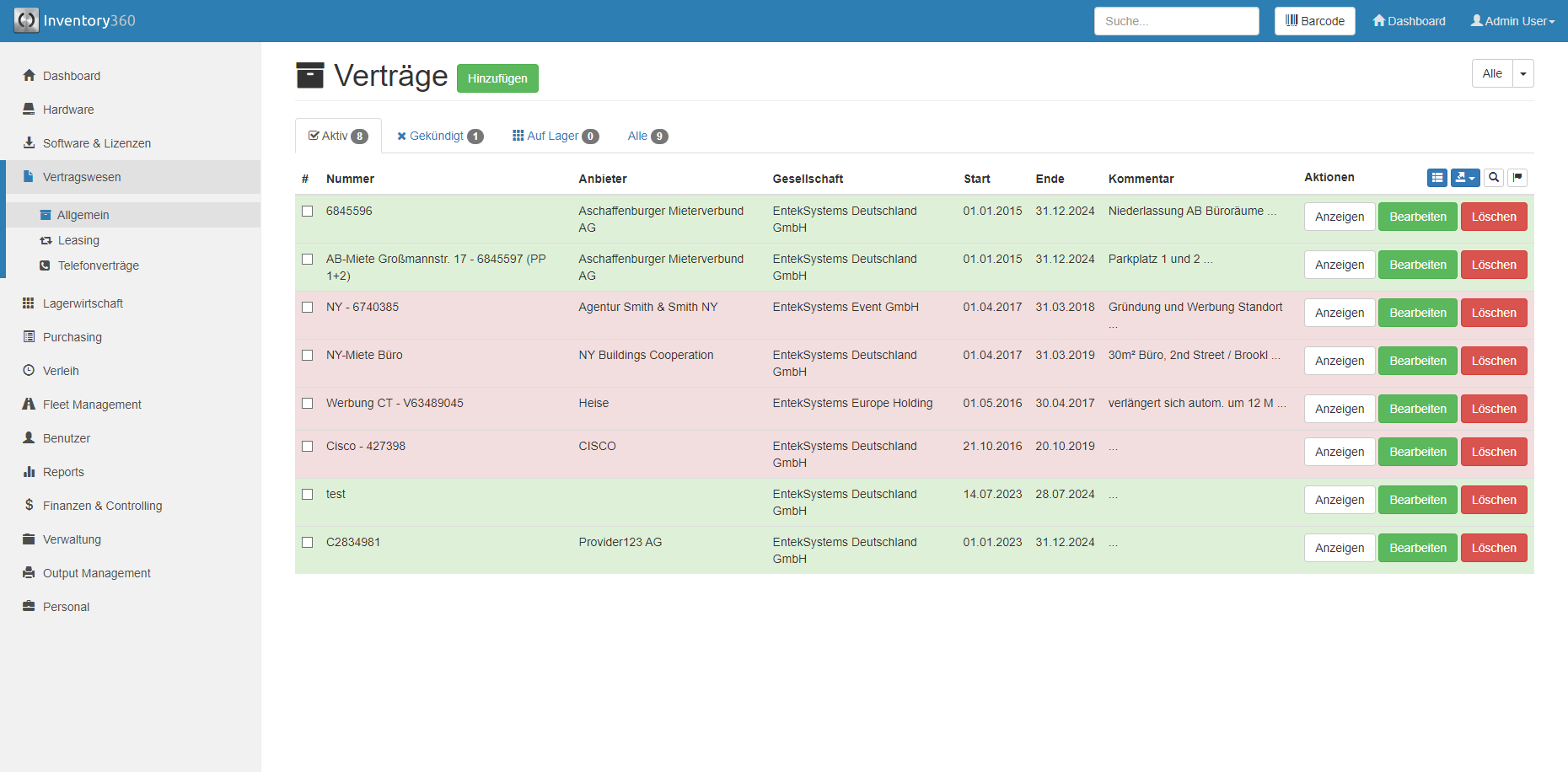 Kombiniert Hardware, Lizenzen, Verträge, Bestellungen und vieles mehr in einem System.