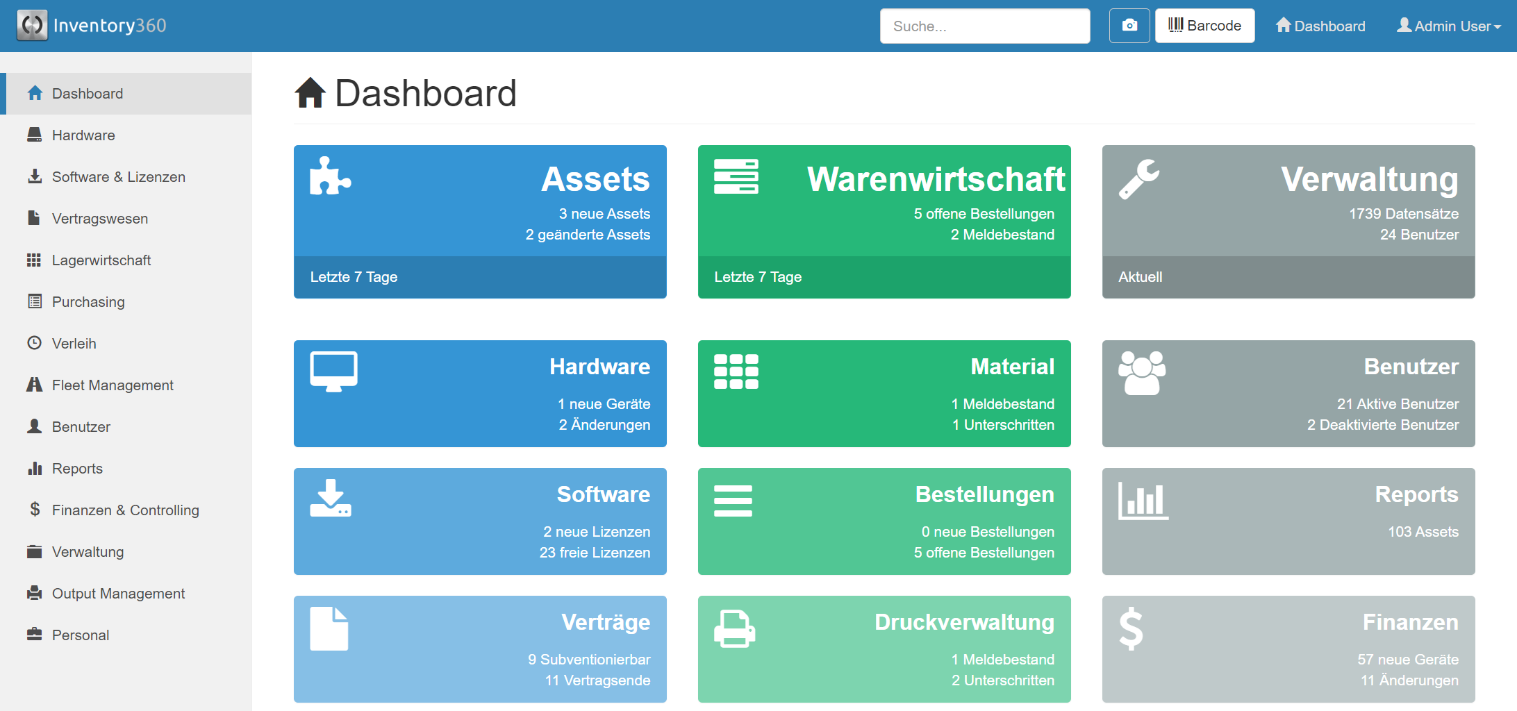 Kombiniert Hardware, Lizenzen, Verträge, Bestellungen und vieles mehr in einem System.