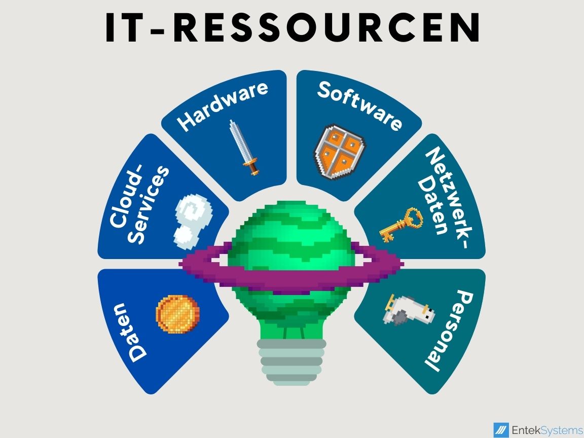 IT-Ressourcen sind die verschiedenen Komponenten und Elemente, die in einer IT-Infrastruktur vorhanden sind und für den Betrieb und die Bereitstellung von IT-Services benötigt werden. Sie umfassen unter anderem:
