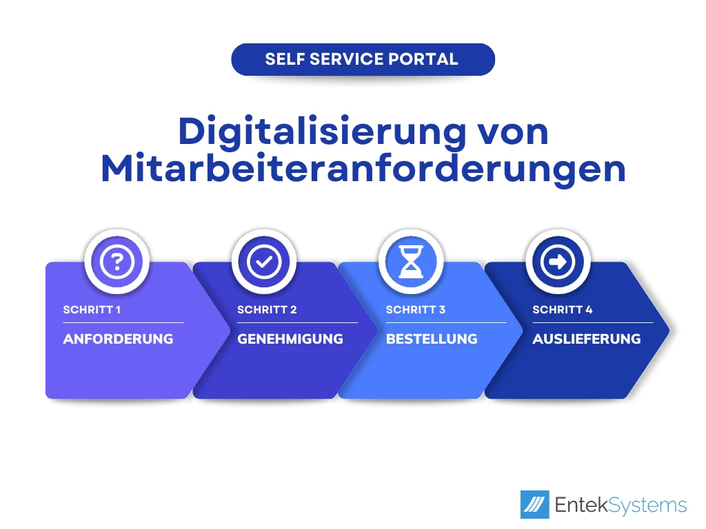 Erfahren Sie, wie ein Self-Service-Portal IT-Prozesse beschleunigt, Genehmigungsworkflows automatisiert und die Bereitstellung von Arbeitsmitteln digitalisiert.
