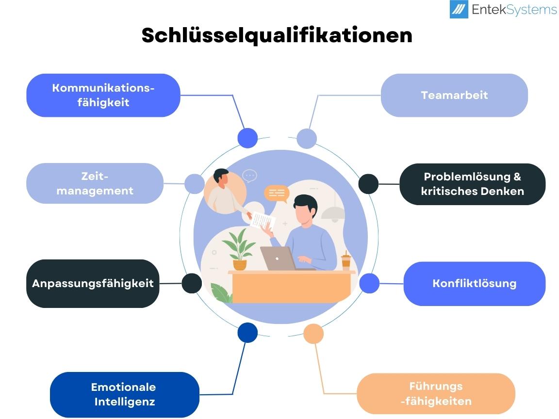 Diese Fähigkeiten sind entscheidend, um effektiv zu kommunizieren, in Teams zu arbeiten und Herausforderungen zu meistern.