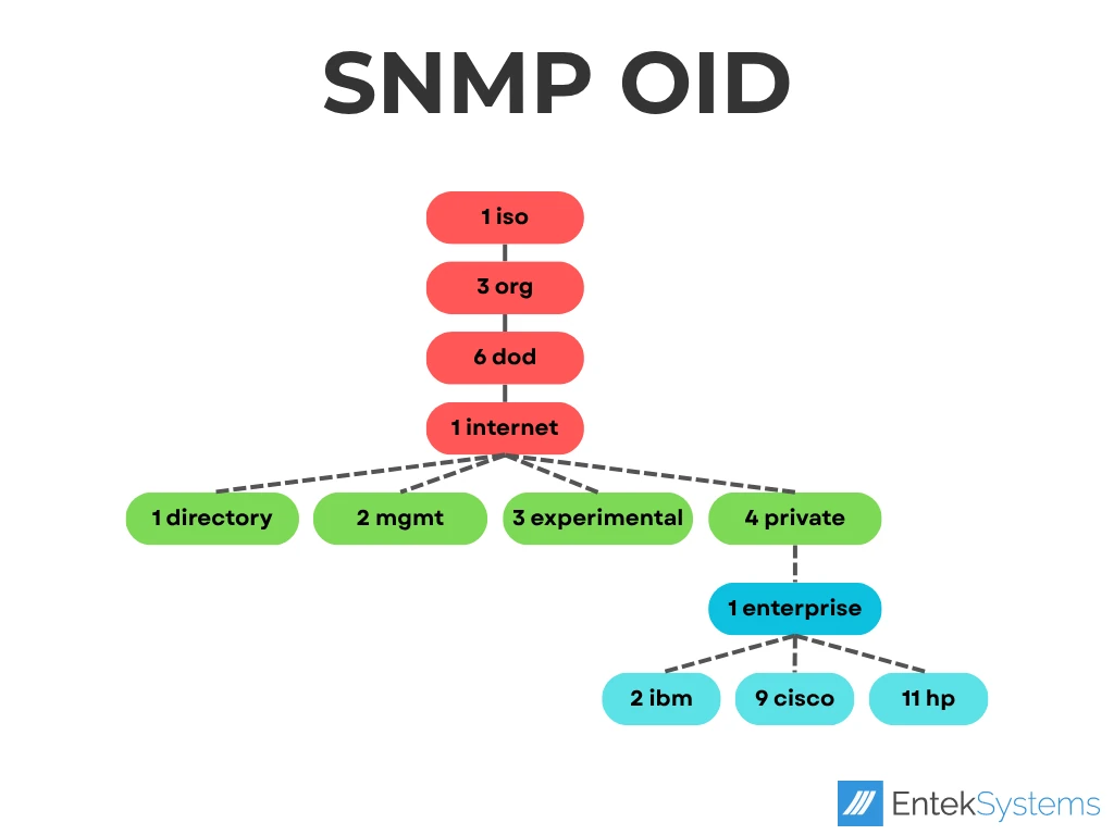 Jedes Netzwerkgerät stellt aufgrund seiner Funktionen unterschiedliche Abfragemöglichkeiten bereit. Um diese gezielt ansprechen zu können, gibt es sogenannte OIDs (= Object Identifier).
