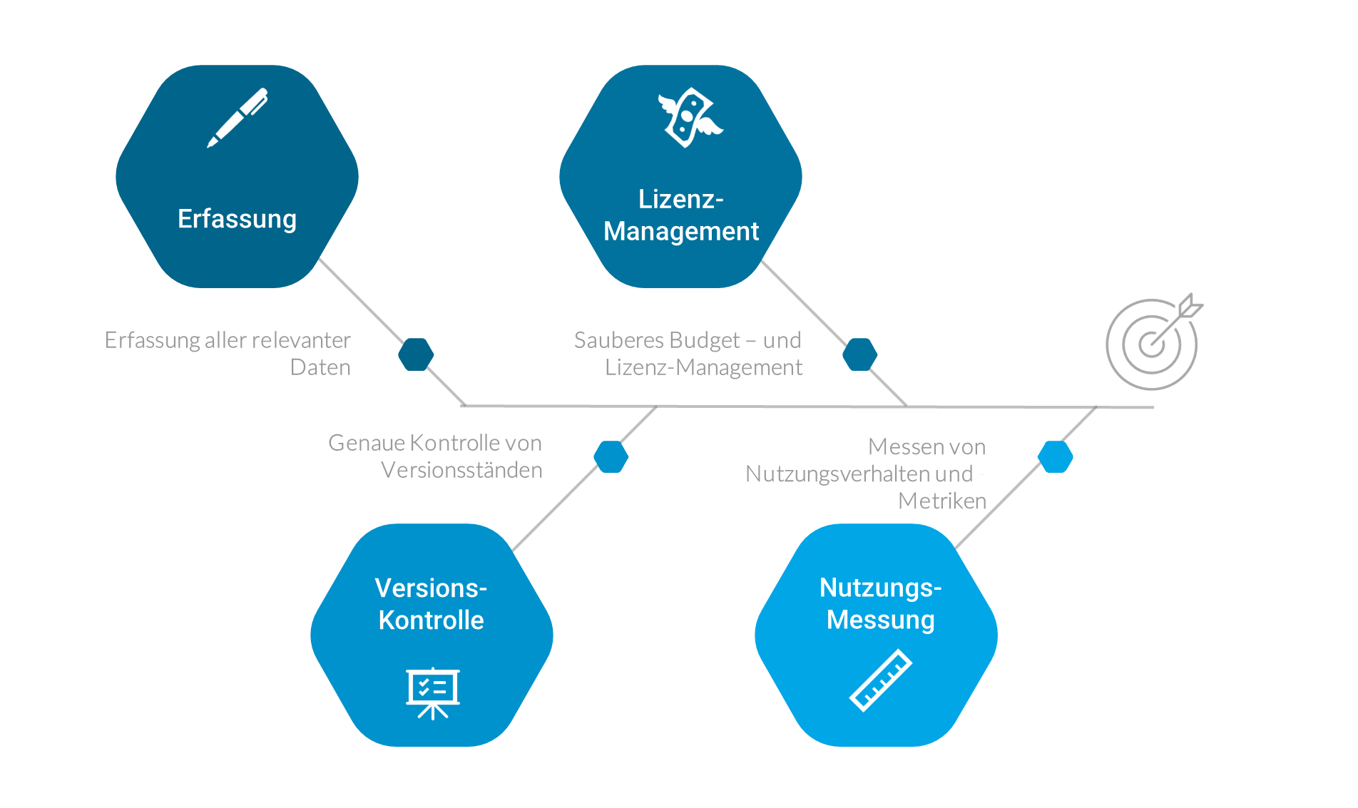 Durch die systematische Erfassung und Dokumentation von Softwareanwendungen kann das Unternehmen nicht nur finanzielle und rechtliche Risiken minimieren, sondern auch die Effizienz der IT-Infrastruktur steigern.