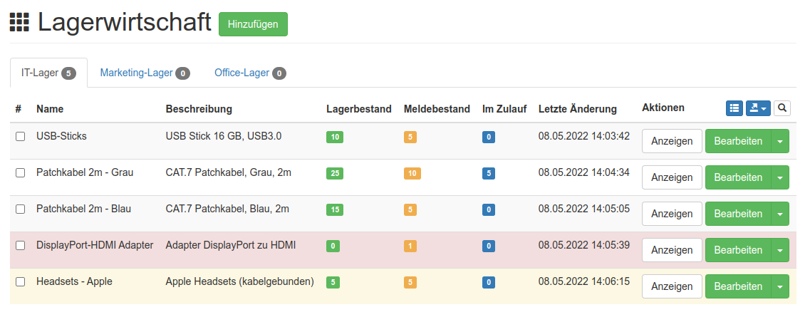 Ein guter Ansatz kann daher sein, in einer Lagerverwaltung entsprechende Bestände zu pflegen, ohne jedes Gerät einzeln in der Tiefe erfassen zu müssen: