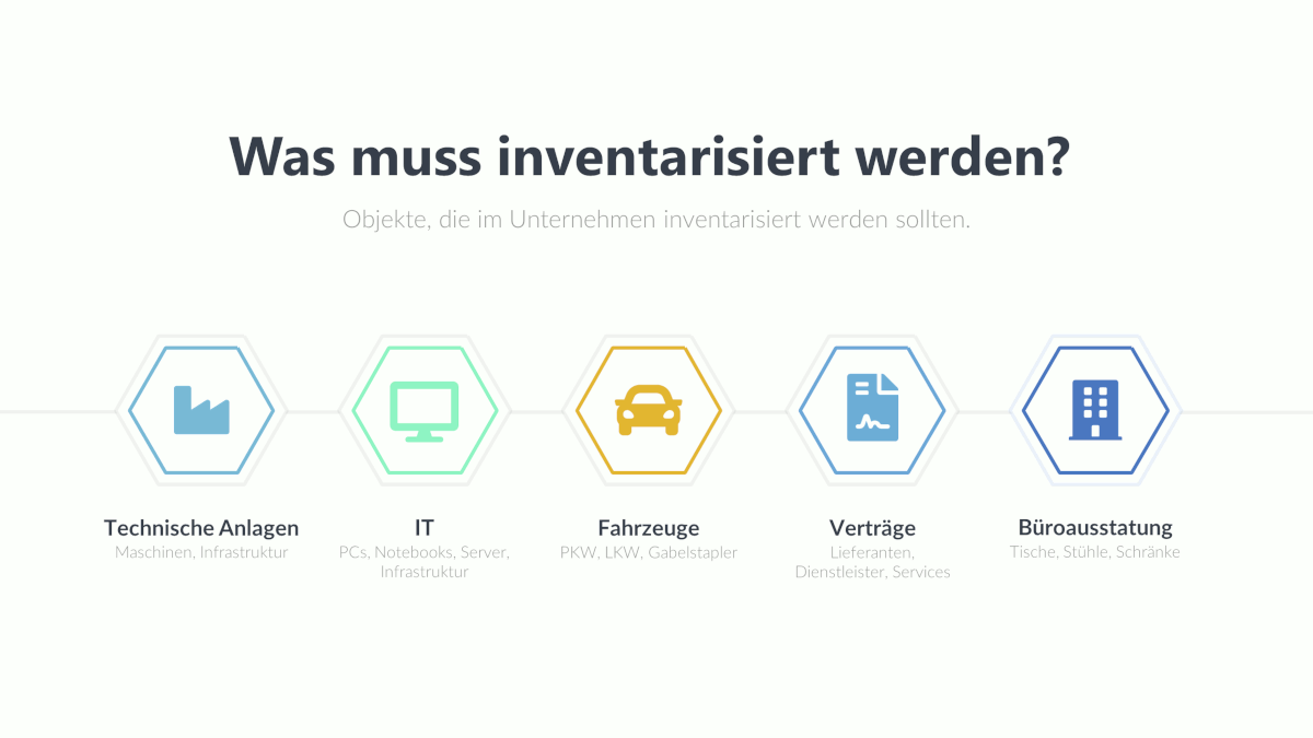 All diese Objekte müssen sich auch in Ihrer Inventarisierung wiederfinden lassen.