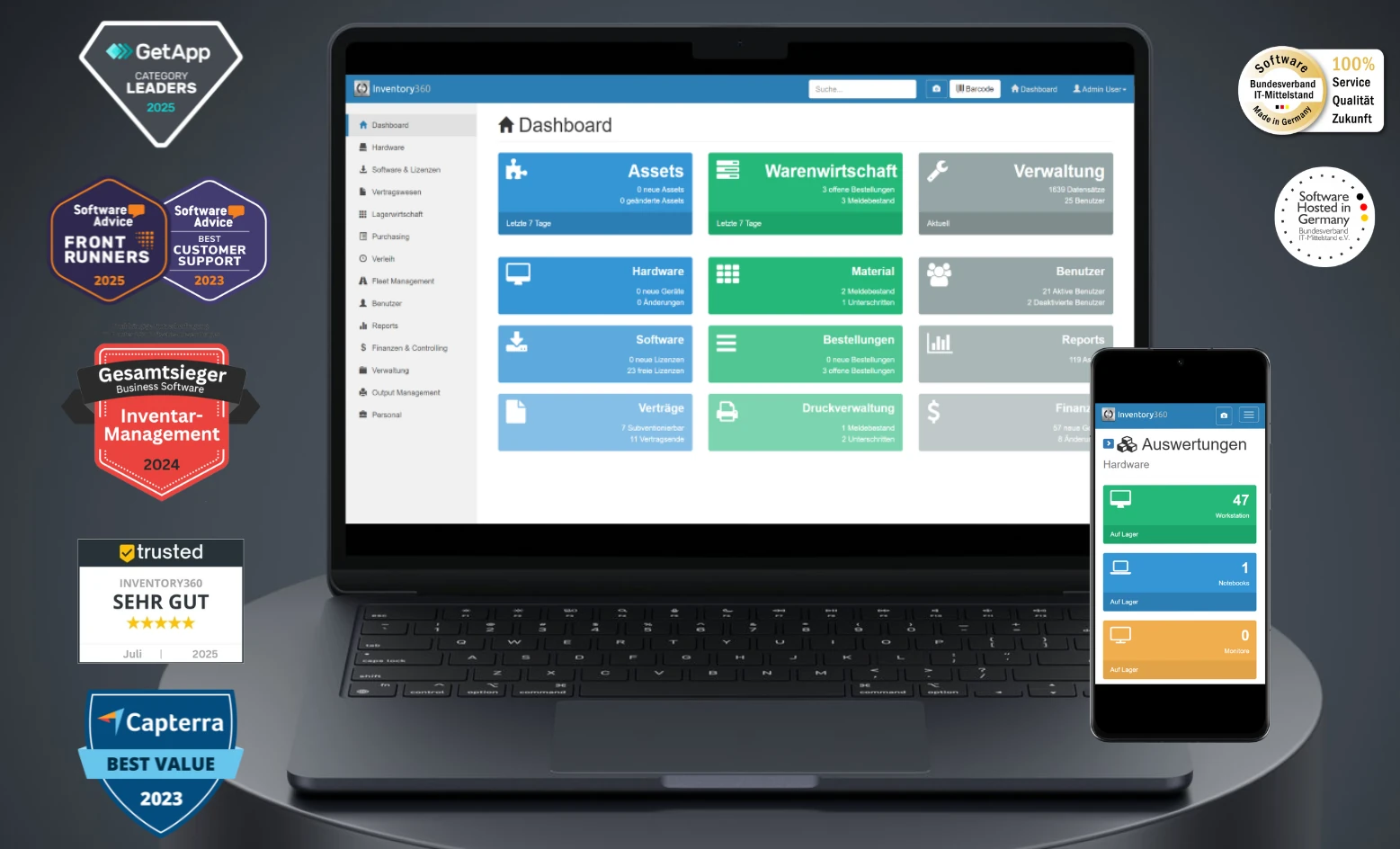 Kombiniert Hardware, Lizenzen, Verträge, Bestellungen und vieles mehr in einem System.